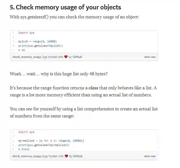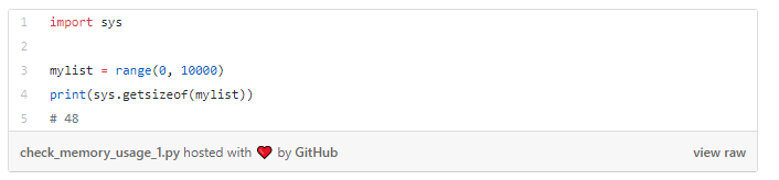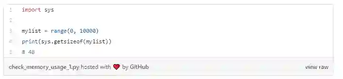 使用sys.getsizeof()就可以检查内存使用的情况: