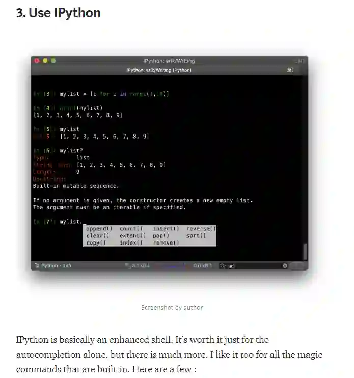 ipython是一个python的交互式shell,比默认的python shell好用得多,支持变量自动补全,自动缩进,支持bash shell命令,内置了许多很有用的功能和函数。学习ipython将会让我们以一种更高的效率来使用python。同时它也是利用Python进行科学计算和交互可视化的一个最佳的平台。