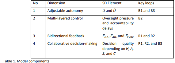 与此同时,在军事领域,人类操作员与人工智能驱动的决策支持系统共同分析战场数据以提供战术决策信息,而配备人工智能的无人驾驶飞行器与人类指挥官协作执行监视、侦察和协调的任务规划[14], [15], [16]。人类智能体与人工智能智能体之间的学习成分是有效人机组队的支柱,尤其是在军事等关键领域,因为此功能使得智能体能够持续相互学习并调整其行为,这对于在快速变化和不可预测的情况下保持作战效能、安全和任务成功至关重要[17]。共同学习过程促进了共享心智模型、相互信任和校准依赖的发展,确保双方智能体不仅理解任务环境,而且理解彼此的能力、局限性和决策模式[18]。这种动态适应通过联合训练演习、实时反馈循环以及将人类经验知识与人工智能数据驱动的见解相结合等机制实现。尽管对人机组队的兴趣日益增长,但在科学文献和从业者的努力中,关于明确捕捉和表示人类与人工智能智能体之间共同学习过程的模型仍存在知识空白。因此,本研究旨在开发一个模型,以捕捉和表示人机团队中共同学习的关键要素,并特别关注军事行动。通过弥补这一空白,所提出的模型旨在增进对如何执行人类与人工智能智能体之间的持续学习和适应以提升团队绩效、信任校准和任务成功的理解。为此,该模型采用设计科学研究方法论[20],运用系统动力学机制[19]进行开发。