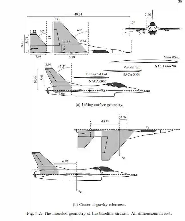 基于文献建立的气动与控制影响认知后,本文分析框架如下:首先,利用公开数据与已发表图纸的缩放估算确定基准战斗机几何构型,并在此基准模型上进行BIRE所需的几何修正。完成几何定义后,构建描述各机型所受气动力与力矩的数学模型。这些模型以传统线性化系数模型为基础,结合对飞机气动特性的认知与解析研究成果引入特定非线性效应。通过数值升力线法数据对各模型系数进行评估。