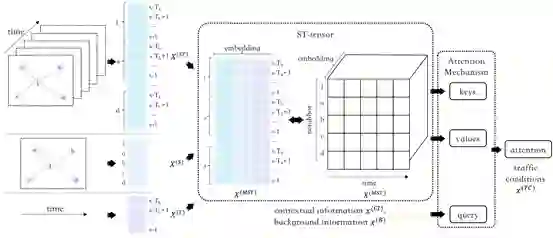 路线耗时预估任务旨在为给定的路线和出发时间估算出对应的通行时间。路线耗时预估任务在智能交通系统(例如导航、路线规划、网约叫车服务等)有着至关重要的作用。该任务面临诸多挑战,尤其是路况预测和道路链接信息。首先,路况预测的准确率和路段的历史路况强相关。现有的工作主要使用时空图神经网络改善路况预测的准确率。然而,这些工作将时间信息和空间信息独立对待,很少考虑时间和空间的关联性。其次,路线的道路链接信息(例如是否拐弯等)也会对用户的驾驶速度带来较大影响。之前的工作主要使用序列化结构去建模路线的道路链接信息。然而,序列化建模方式很难适用于大规模真实服务。 为更有效地解决路况预测和道路链接信息建模问题,百度提出了一个端到端的神经网络框架ConSTGAT。百度研究团队还提出了一个新颖的时空图神经网络,并专门设计了一种能够捕捉时间信息和空间信息之间协同关系的特殊注意力机制。此外,为更高效地利用道路链接信息,设计了一种高效计算模型,该模型基于路线的局部窗口以及卷积结构捕捉道路链接信息,并使用多任务学习同时利用路线和路段信息进行计算。基于上述模型设计,可提前并行预估每个路段的通行时长。在大规模真实数据集上的实验结果表明ConSTGAT的效果显著超过多个强健的基线模型。此外,ConSTGAT已成功部署于百度地图中,为每天数百亿的路线耗时请求提供了稳定的预估服务,这表明ConSTGAT是一个具有高可用性的路线耗时预估工业级解决方案。