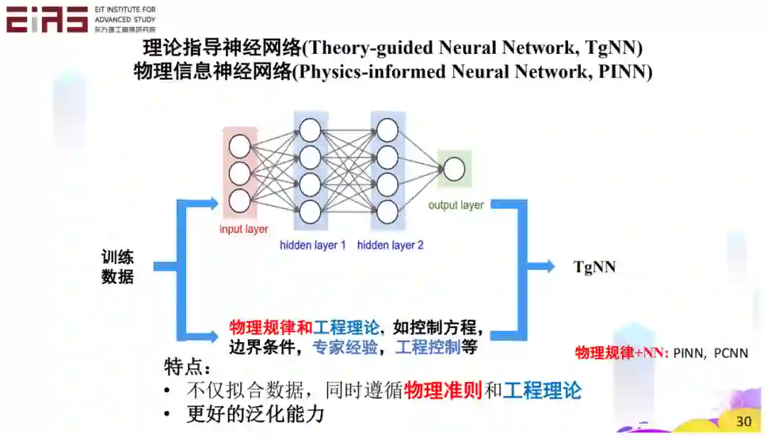 在模型的训练过程中,一方面可以利用数据驱动模型基于大量的数据进行学习,另外一方面我们还有控制方程、物理规律、工程理论,专家经验等先验信息。如果我们能够将这些先验信息嵌入数据驱动模型中,我们就不仅可以拟合数据,同时也保证模型输出结果遵循物理的准则和工程的理论,这样的模型就有更好的泛化能力。
