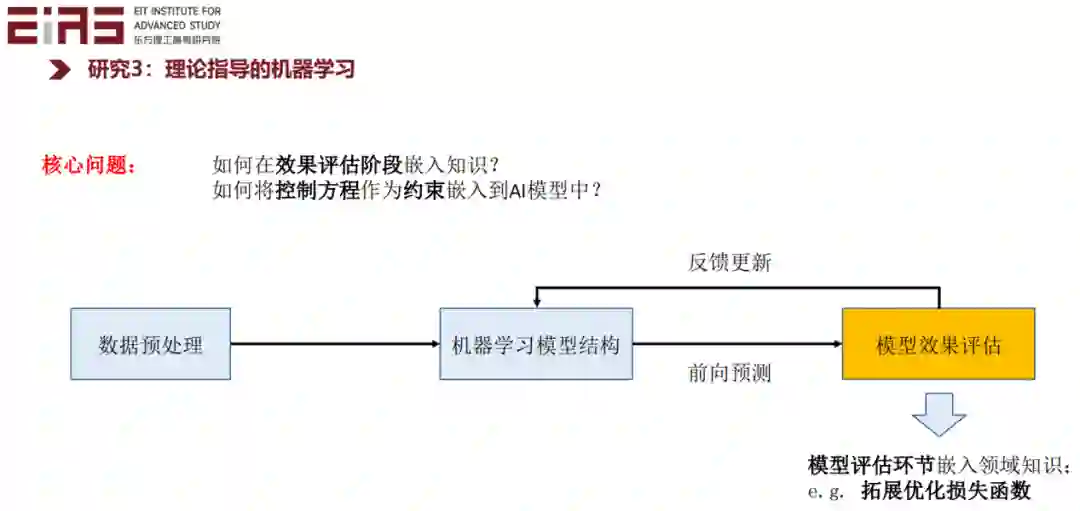 然后我们介绍一下在模型效果评估方面嵌入领域知识的方法,这方面的例子比较充分,主要是基于改进损失函数的方法将控制方程作为约束嵌入到人工智能的模型中。