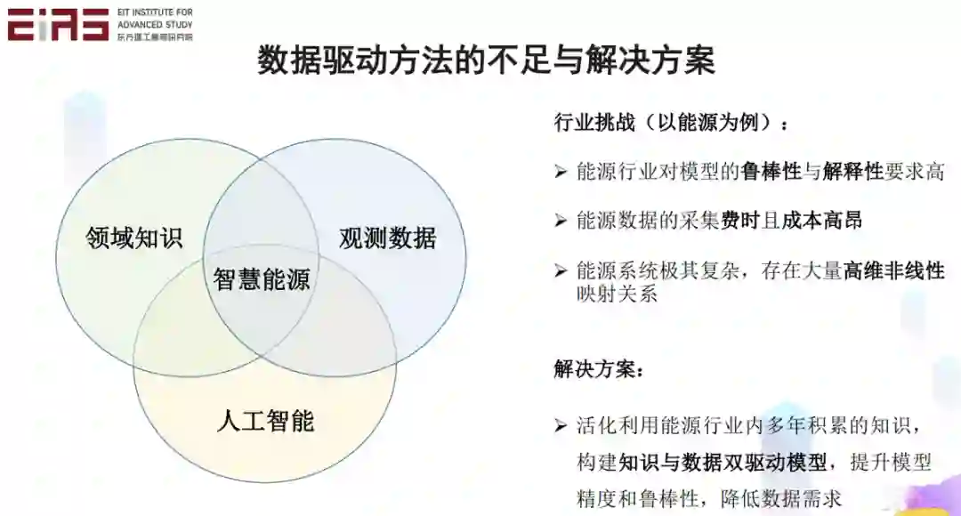 对很多行业来讲,比如能源,对于模型的鲁棒性和可解释性要求很高,同时数据的采集费时且成本高,而且这个系统极其复杂,存在大量高维非线性的映射关系。这些特点导致纯粹的数据驱动或者知识驱动模型无法达到令人满意的效果。针对此问题,我们希望通过灵活利用能源行业多年积累的知识,构建知识与数据双驱动模型,提升模型精度和鲁棒性,降低数据需求。