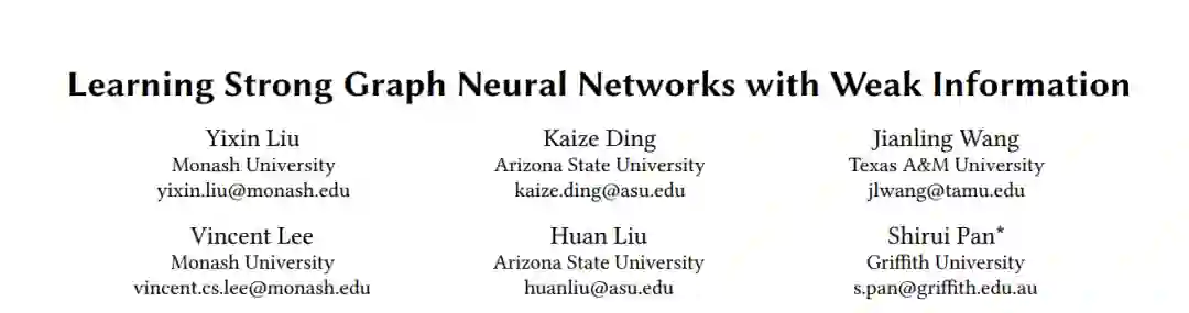 图神经网络(GNNs)在许多图学习任务中表现出令人印象深刻的性能。然而,当输入的图数据信息弱,即结构不完整、特征不完整和标签不足时,GNNs的性能可能会下降。大多数先前的研究试图从具有特定类型弱信息的图数据中学习,但在处理各种数据缺陷并相互影响的场景时,这些研究效果不佳。为了填补这个空白,我们在这篇论文中,试图针对弱信息图学习(GLWI)问题,开发一种有效且原则性的方法。基于我们的实证分析,我们得出了解决GLWI问题的两个设计重点,即使GNNs能够进行长距离传播,并允许信息传播到那些与最大连接组件隔离的漂泊节点。据此,我们提出了D2PT,一种双通道GNN框架,它不仅在具有不完整结构的输入图上执行长距离信息传播,而且还在编码全局语义相似性的全局图上执行信息传播。我们进一步开发了一个原型对比对齐算法,它将从两个通道中学到的类级原型进行对齐,以便两种不同的信息传播过程可以相互受益,最终学习的模型可以很好地处理GLWI问题。在八个真实世界的基准数据集上的大量实验表明,我们提出的方法在各种GLWI场景中都表现出了有效性和效率。