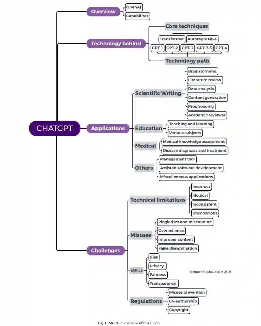 学术评审。研究论文的同行评议是传播新思想的一个关键过程,对科学进步有重大影响。然而,产生的研究论文的数量给人类评审者带来了挑战。[161]对ChatGPT用于文献综述的潜力进行了研究。具体来说,ChatGPT能够对输入的学术论文进行分析,然后从论文的概述、优缺点、清晰度、质量、新颖性、可重复性等方面对论文进行评价。然后,将论文生成的评论输入ChatGPT进行情感分析。在此之后,可以对接受评审的论文做出决定。
