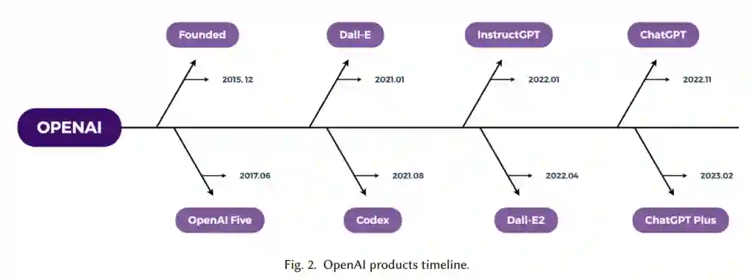 OpenAI是一个研究实验室,由一组致力于构建安全和有益AGI[50]的研究人员和工程师组成。它成立于2015年12月11日,由一群备受瞩目的科技高管组成,包括特斯拉CEO Elon Musk, SpaceX总裁Gwynne Shotwell, LinkedIn联合创始人Reid Hoffman,以及风险投资家Peter Thiel和Sam Altman[78]。在这一小节中,我们将讨论OpenAI的早期发展,它是如何成为一个营利性组织的,以及它对AI领域的贡献。 OpenAI最初是一个非营利组织[24],其研究主要集中在深度学习和强化学习、自然语言处理、机器人等方面。在发表了几篇有影响力的论文[123]并开发了一些最复杂的人工智能模型后,该公司很快就因其前沿研究而建立了声誉。然而,为了创造能够带来资金的人工智能技术,OpenAI在2019年被重组为营利性公司[31]。尽管如此,该公司在为其技术创建商业应用的同时,继续开发合乎道德和安全的人工智能。此外,OpenAI还与几家顶级科技公司合作,包括微软、亚马逊和IBM。今年早些时候,微软透露了与OpenAI的一项为期数年、价值数十亿美元的新合资项目[21]。虽然微软没有给出确切的投资金额,但Semafor声称微软正在讨论花费100亿美元[101]。据《华尔街日报》(the Wall Street Journal)报道,OpenAI的市值约为290亿美元。