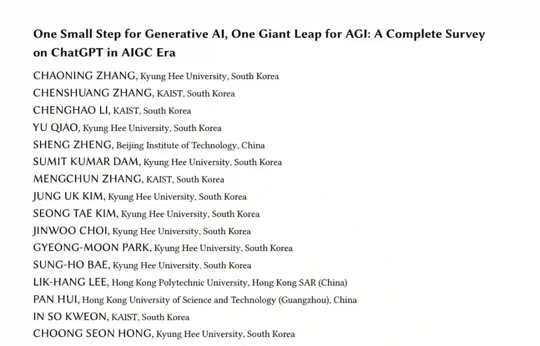 OpenAI最近发布了GPT-4(又名ChatGPT plus),这被证明是生成式AI (GAI)的一小步,但却是通用人工智能(AGI)的一大步。自2022年11月正式发布以来,ChatGPT凭借媒体的广泛报道迅速吸引了众多用户。这种前所未有的关注也促使众多研究者从各个方面对ChatGPT进行研究。据谷歌scholar统计,有500多篇文章的标题中有ChatGPT或在摘要中提到它。考虑到这一点,迫切需要进行调研,我们的工作填补了这一空白。首先对ChatGPT的底层技术、应用以及面临的挑战进行了全面的综述。对ChatGPT如何演变为实现通用AIGC(即AI生成内容)的前景进行了展望,这将是AGI发展的一个重要里程碑。