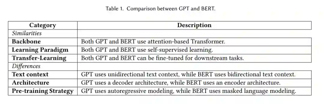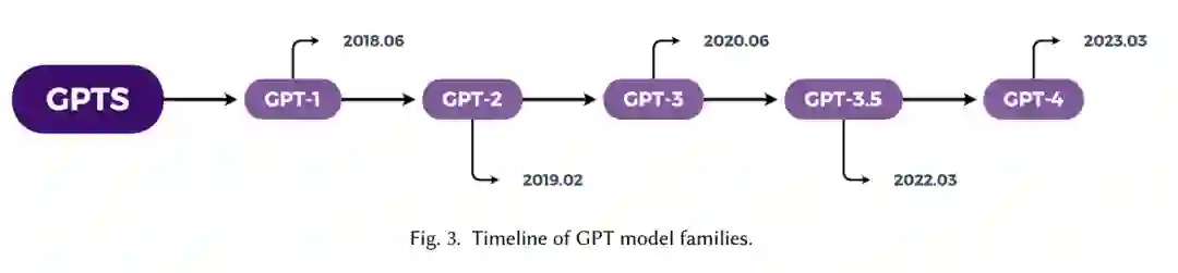 ChatGPT是在一系列GPT模型的基础上发展起来的,这是自然语言处理领域的一项重大成就。图6概述了这一开发过程。在下面,我们总结了GPT的关键组成部分以及更新后的GPT的主要变化。