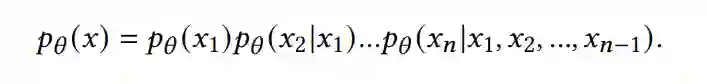 Transformer技术已经成为近期大型语言模型发展的重要基础,如BERT[41]和GPT[18, 122, 136, 137]系列也是基于Transformer技术的模型。还有一系列工作将Transformer从语言扩展到视觉,即计算机视觉[42,63,100],这表明Transformer已经成为NLP和计算机视觉的统一骨干架构。 生成式预训练:自回归。对于模型预训练[64,212,216-218],有多种流行的生成式建模方法,包括基于能量的模型[56,159,160,186],变分自编码器[5,84,124],GAN[17, 54, 198],扩散模型[20,33,213,215,220]等。在这里,我们主要总结自回归建模方法[11,90,90,177,178],因为它们是GPT模型的基础[18,122,136,137]。自回归模型是统计分析中处理时间序列数据的一种重要方法。这些模型指定输出变量与前面的值线性相关。在语言建模的上下文中[18,122,136,137],自回归模型根据前一个单词预测后一个单词,或根据下面的单词预测最后一个可能的单词。该模型学习序列数据的联合分布,使用之前的时间步长作为输入来预测序列中的每个变量。自回归模型假设联合分布𝑝𝜃(𝑥)可以分解为条件分布的乘积,如下所示:
