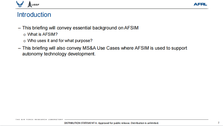 美国空军《仿真、集成和建模的高级框架(AFSIM)》11页slides