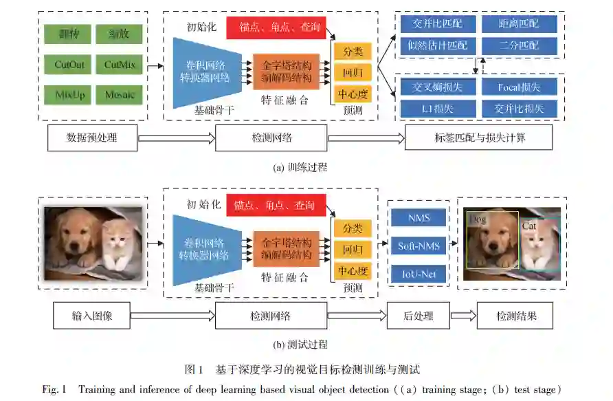 视觉目标检测是计算机视觉的经典任务,旨在 定位图像中存在物体的位置并识别物体的具体类 别。 目标检测是许多计算机视觉任务及相关应用的 基础与前提,直接决定相关视觉任务及应用的性能 好坏。 因此,视觉目标检测技术受到了学术界、工业 界等各领域、乃至世界各国政府的广泛关注。 在学 术界,目标检测一直是各大计算机视觉会议及期刊 的研究热点之一,每年有大量的目标检测相关论文 发表。 根据谷歌学术显示,研究人员近 10 年来在目 标检测方面发表论文 15 000 余篇。 在工业界,国内 外科技巨头(如谷歌、脸书、华为和百度等)、初创公 司(如商汤、旷视等)纷纷在目标检测相关领域投入 大量人力财力。 与此同时,目标检测技术是新一代 人工智能的重要共性关键技术,世界各国竞相竞争。