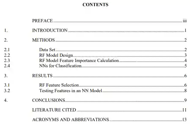 机器学习(ML)可用于对基于离子迁移率光谱(IMS)的化学检测器在检测爆炸物、化学战剂和其他挥发性危险化合物时产生的光谱进行分类。IMS检测器的光谱由漂移时间段(X轴)和其相应的振幅(Y轴)组成。这些值代表了每个光谱中存在的峰值,可以作为特征来训练ML算法。在频谱上进行训练时,特征的总数可以超过1000个,而且是高卡度的。这项工作展示了一种使用随机森林(RF)分类和互换特征重要性的方法,以缩小选择最重要的光谱仓。这些特征是训练数据中常见的峰值位置的代表。使用由RF确定的最重要的特征来减少训练数据集的维度,大大增强了密集神经网络的准确性。