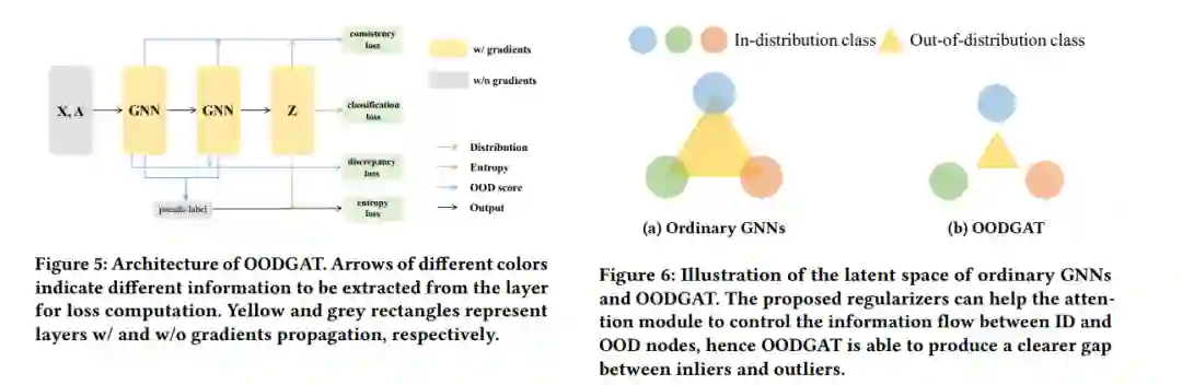神经网络(GNNs)是执行图上预测任务的最新模型。尽管现有的GNNs在与图相关的各种任务上都表现出色,但在训练和推断过程中图中存在超出分布(OOD)节点的情境却鲜有关注。借鉴计算机视觉和自然语言处理的概念,我们将那些在训练集中未见过的标签的节点定义为OOD节点。由于许多网络都是由程序自动构建的,实际的图经常很嘈杂,并可能包含来自未知分布的节点。在这项工作中,我们定义了包含超出分布节点的图学习问题。具体来说,我们的目标是完成两项任务:1)检测不属于已知分布的节点;2)将其余的节点分类为已知的类别之一。我们证明了图中的连接模式对于异常检测是有信息的,并提出了一种新颖的GNN模型——超出分布的图注意力网络(OODGAT),该模型明确地模拟了不同类型的节点之间的交互,并在特征传播过程中将内群体和异常值分开。大量的实验表明,OODGAT在异常检测方面的表现远超过现有的方法,而在已知分布的分类方面则更好或相当。https://www.zhuanzhi.ai/paper/c0ec56708fbc152f5ba07db943605fbf