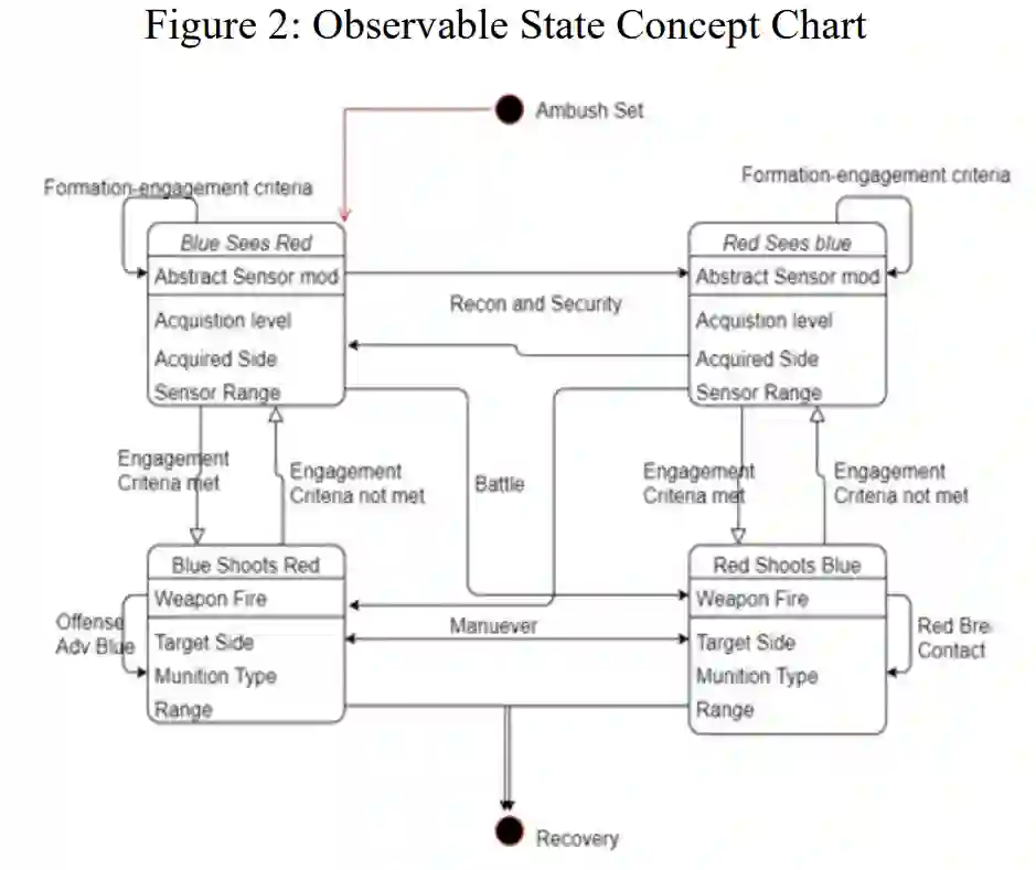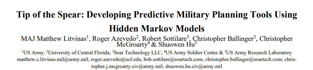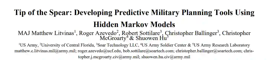 随着新技术的出现,现代战场的演变日益复杂。然而,战场的本质仍然可以用德-约米尼的 “大战术 ”来解释。军事规划者的成功在于他们有能力在战场的决定性时刻,通过复杂系统的分层效应形成协同效应。协同效应需要在规划单元中工作的主题专家(SME)在时间和空间上整合系统和单位。本文探讨了如何应用隐马尔可夫模型(HMMs)来增强现有的兵力与均势相关性(COFM)计算器,将其作为军事规划中的预测工具。目前的工具侧重于用被称为等效因子的标量调整进攻行动的 3 比 1 兵力比。这些工具缺乏识别战场时间和空间物理特性的能力。在计划和训练中利用兵棋推演为严肃游戏改进计划工具提供了场所。本研究采用了在 OneSAF 中生成的场景,从简单的排级伏击到以旋翼资产为特色的联合武器机动,这些场景都需要进行塑造以确保有利的 COFM。重点是利用 HMM,使用潜在的可观测数据建立成功概率的时间序列指标,重点是通信动态。在本研究中,通过视觉和直接接触产生的数据来研究可观察到的通信。通过观察部队之间的接触,可以预测相对优势在时间和空间上的隐藏状态。利用 OneSAF 模拟生成的数据,HMM 可确定行动状态和成功概率,同时最大限度地减少部队内部所需的存在。