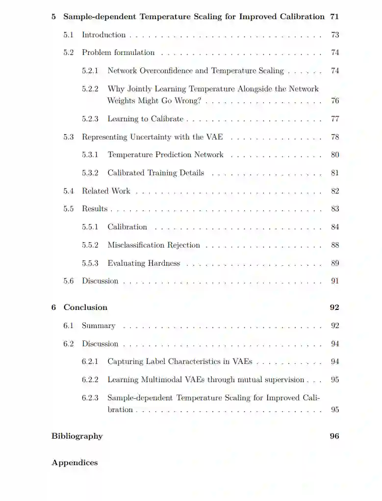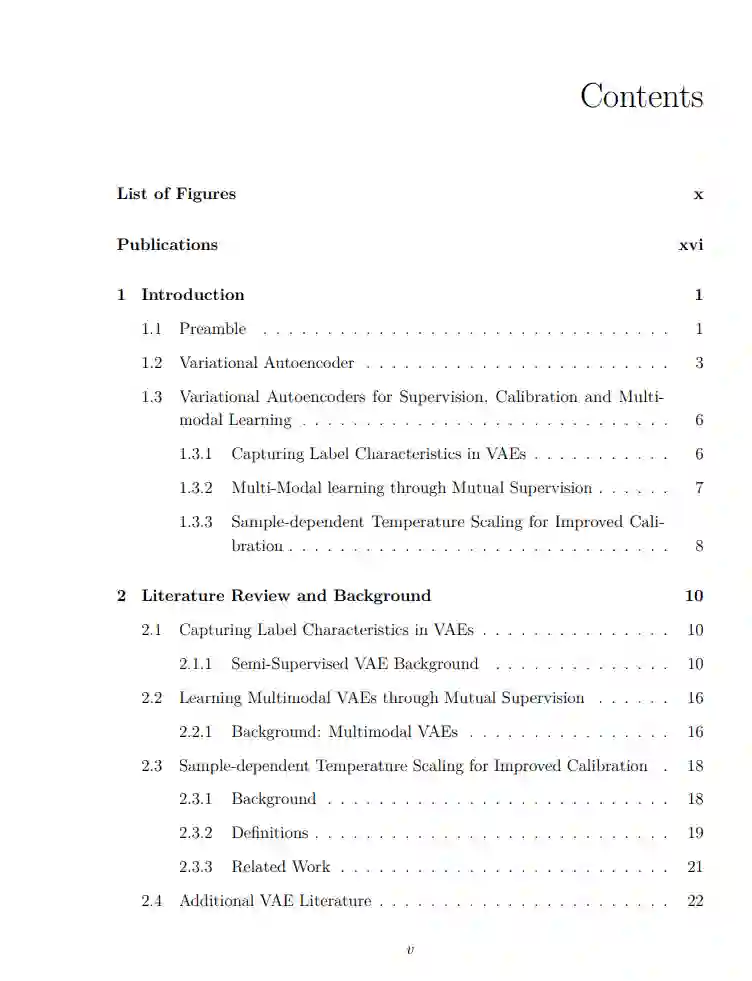 在机器学习中,长期以来,数据表示的学习一直是一个理想的目标。构建这样的表示可以使得分类或物体检测等下游任务高效执行。此外,我们希望这些表示可以以一种可解释的方式构建,这将允许我们对输入特性进行细致的干预和推理。其他任务可能包括不同模态之间的交叉生成,或者校准预测使其信心匹配其准确性。一种有效学习表示的方法是通过变分自编码器(VAE),它对可观察输入的潜在变量进行变分推断。在这篇论文中,我们展示了如何利用VAE:将标签信息融入学习过程;学习多模态数据的共享表示;以及校准现有神经分类器的预测。