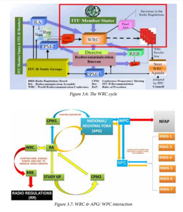 射频频谱是一种稀缺、有限的自然资源,频谱管理和监管机制是确保高效、无干扰使用频谱的关键因素。射频频谱跨越地理和政治边界;因此,在国际层面就有效、合理和基于需求的频谱使用进行协调是频谱管理的标志。国际电信联盟(ITU)是管理频谱的国际论坛,而印度通信与信息技术部(MoC&IT)下属的无线规划委员会(WPC)则扮演着频谱管理者的角色,而印度电信与信息管理局(TRAI)则扮演着监管机构的角色,在满足国防/政府机构的战略需求和商业需求(这两者都符合国家利益)之间取得微妙的平衡。因此,必须了解全球、地区和国家层面的频谱监管组织和流程,以优化武装部队的频谱需求预测。