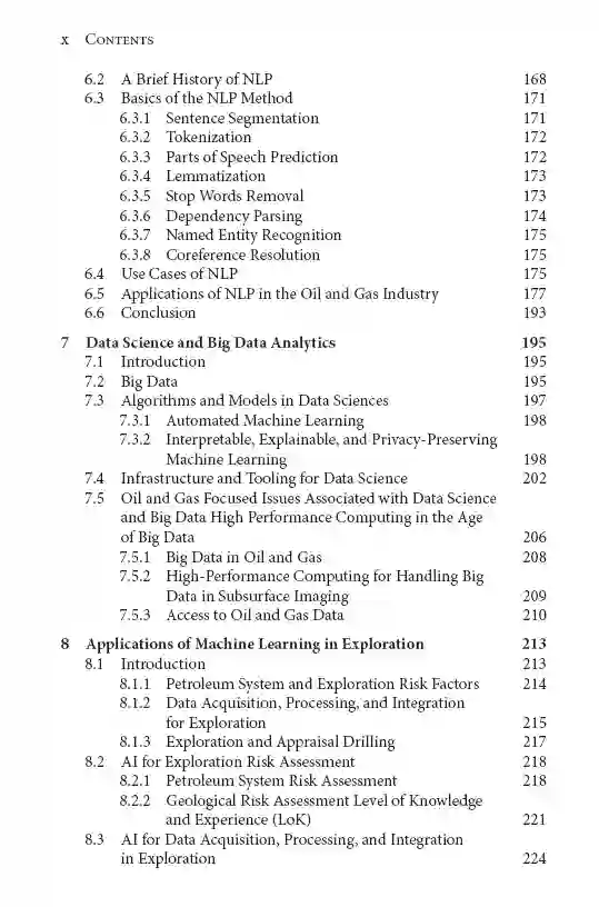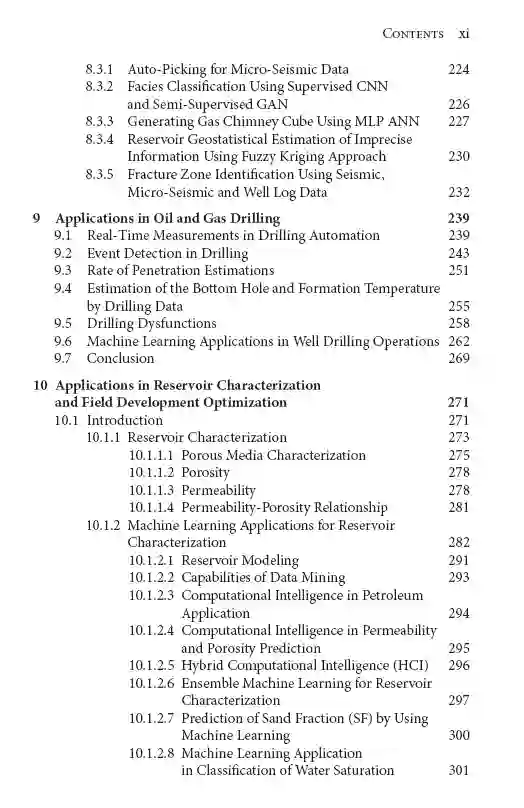 这本书深入介绍了人工智能(AI)机器学习和数据分析(DA)的基础。它还包括在油气藏勘探、开发和生产中的许多AI-DA应用。这本书涵盖了“智能油田”中使用的许多工具的基本技术细节。其中包括模式识别、神经网络、模糊逻辑、进化计算、专家系统、人工智能机器学习、人机界面、自然语言处理、数据分析和下一代可视化等主题。虽然理论细节将保持在最低限度,这些主题将从石油和天然气应用的观点介绍。 本书着重介绍了智能数据应用到许多不同油气问题的案例历史。该技术的应用范围广泛,从勘探、钻井、油田开发到生产优化、人工举升和二次采油等一系列实际问题。此外,作者还证明了智能数据分析方法在处理许多需要结合机器和人类智能的油气问题,以及处理语言和不精确的数据和规则方面的有效性。