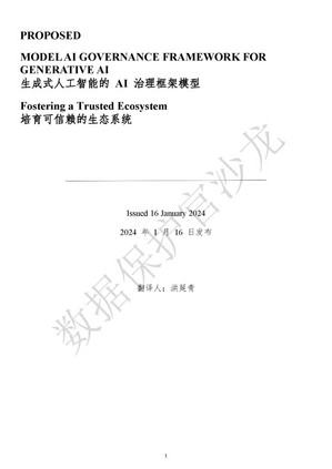 2024年1月16日,新加坡AI Verify基金会(AIVF)和新加坡信息通信媒体发展局(IMDA)共同制定了《生成式人工智能治理的模型人工智能治理框架草案》(Proposed Model AI Governance Framework for Generative AI),以培育可信的生成式人工智能生态系统。该框架在现有涵盖传统AI的2020年人工智能模型治理框架基础上,进一步扩展了模型治理框架,推动了关于生成式人工智能治理的国际共识。