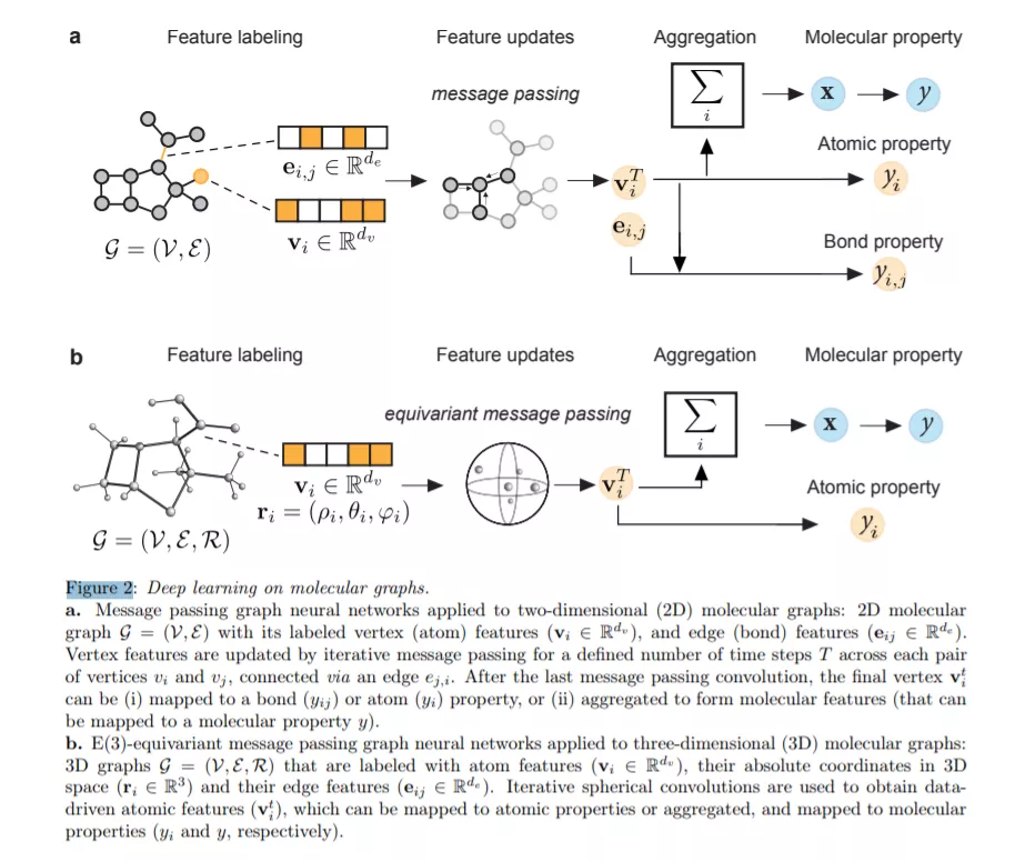 本文的目的是 :(1) 对GDL在分子系统中的应用进行结构化和协调的综述; (2)概述该领域的主要研究方向; (3) 预测GDL的未来影响。重点介绍了三个应用领域,即药物发现、量子化学和计算机辅助合成规划(CASP),特别关注了GDL方法学习到的数据驱动分子特征。所选术语的词汇表见框1。