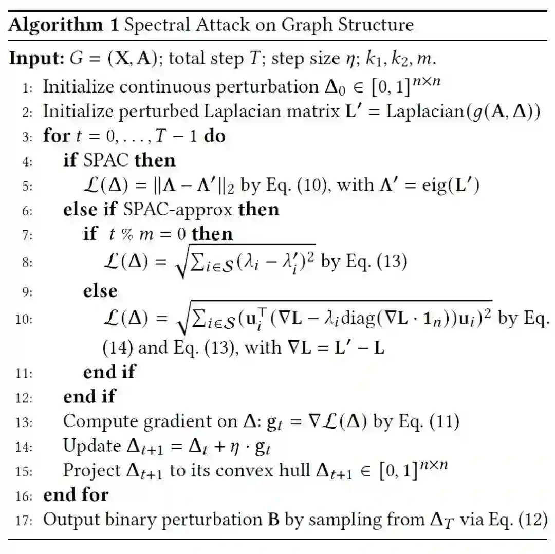 因此,作者认为在谱域对图进行攻击是更有效率的。具体算法如下