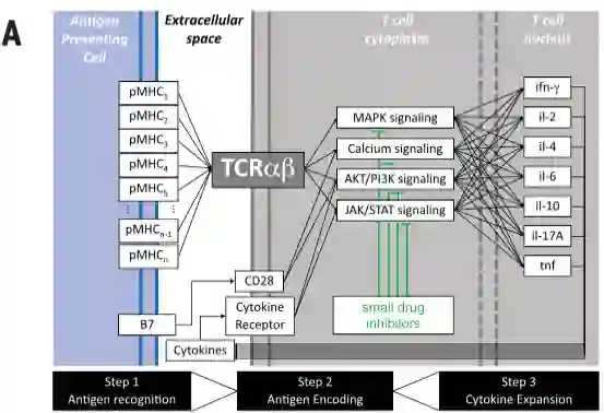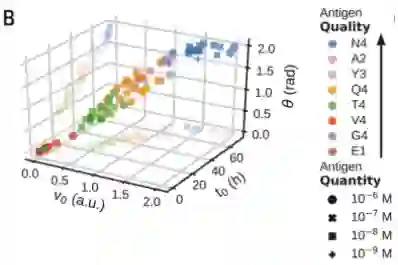 作者专注于模拟T细胞对靶蛋白上的抗原的应答,以机器人方式生成T细胞激活的高精度、多维度动力学数据,并应用监督机器学习来学习信息的动态编码。