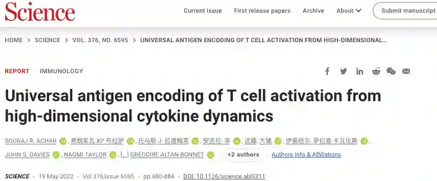 近日,在Science顶刊上,Achar等人发表了题为“Universal antigen encoding of T cell activation from high-dimensional cytokine dynamics"的文章,通过机器人平台与机器学习相结合,对T细胞活化进行实验测量和理论建模,研究广泛的功能性T细胞对不同抗原刺激反应的数据来解决这个问题。使用机器学习,作者构建了一个简化的地图,可以将6种不同的抗原依赖性免疫反应的类别分开。了解这种抗原编码可以帮忙指导免疫治疗,包括工程化嵌合抗原受体(CAR)-T细胞和识别疫苗抗原。