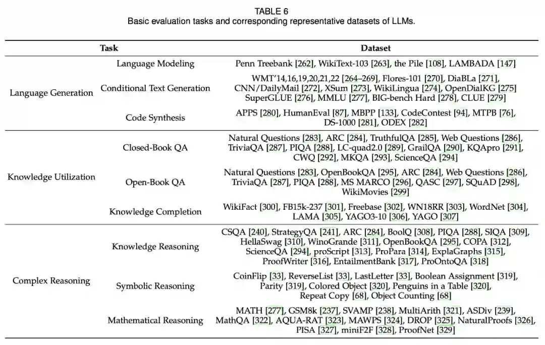 高级任务评估除了上述基本评估任务,LLMs 还表现出一些高级能力,需要特别评估。在第 7.2 节中,研究者讨论了几个有代表性的高级能力和相应的评价方法,包括人工对齐、与外部环境的交互以及工具的操作。