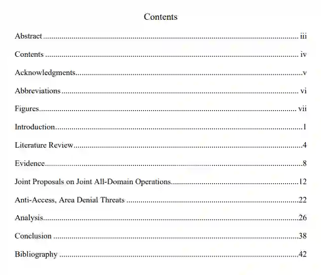 联合全域作战(JADO)是用来描述美国未来战争方式的总称。虽然JADO仍处于概念发展阶段,但它从根本上改变了各领域之间的整合水平以及在战斗空间产生效果的速度。JADO的革命性变化是为了应对美国对手开发的日益强大和扩散的反介入/区域拒止(A2/AD)系统。A2/AD的威力在于其目标是使美国目前的战争方式的执行成本过高。这些变化和威胁的结合是美国国防部关注的源泉,它已经优化了自己,以支持目前形式的战争。本专著的目的是分析联合服务界所设想的新的JADO概念,以及A2/AD对运输业务的威胁,并确定USTRANSCOM必须寻求协调的挑战,以便在未来的冲突中保持偿付能力和可靠性。