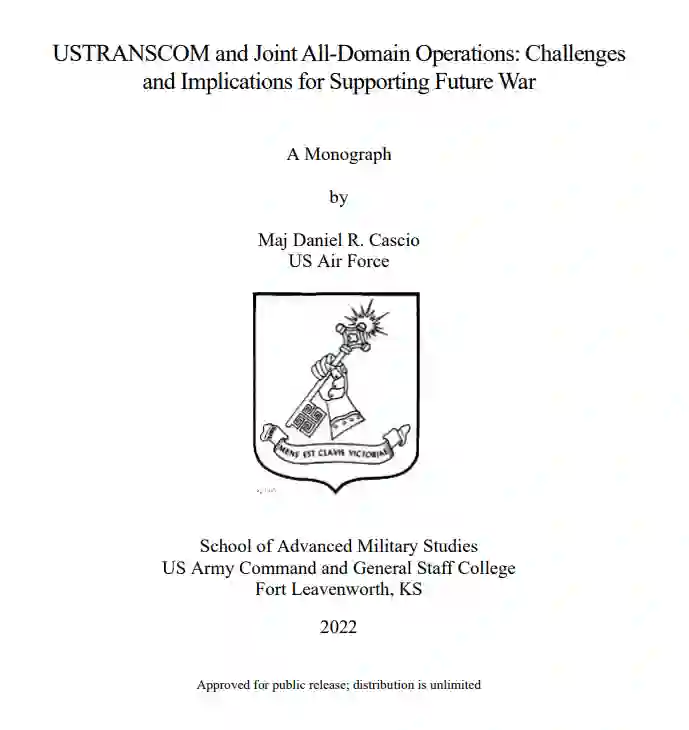 不断发展的联合全域作战(JADO)概念是美国未来战争方式的迷人发展,但其行动的性质和他们试图击败的威胁使人质疑美国运输司令部(USTRANSCOM)是否有适当的资源和组织来维持未来的行动。JADO遵循美国作战理论的历史进程,不断发展各部门和各领域之间更多的整合力量。然而,JADO超越了单纯的消除冲突、协调和整合。JADO寻求真正利用战争的时间性,为敌方部队同时产生多个问题,并具有实时态势感知能力,以识别并随后从一个领域产生效果,从而利用固有的不对称优势。战争领域之间的整合将比美军内部所见的更加紧密,而且行动的节奏将比目前的能力快得多。为了使JADO成为现实,必须进行技术投资并加以实现。除此之外,联合部队内的作战理论将不得不被改写,以反映在未来战斗中释放JADO潜力所必需的最佳实践。所有这些都相当于一个革命性的举措,专注于重塑美国的战争方式。所有领域的作战单位将不得不调整他们的操作方法,以保持在该框架内的功能,并提供系统所需的效果。尽管许多文献和讨论都围绕着作战部队将经历和必须适应的变化,但为确保作战部队得到后勤支持而依赖的维持力量却很少受到关注。