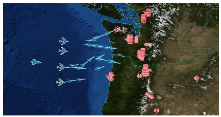 • 最优蓝军响应:图2展示了一个概念性的“高级仿真、集成与建模框架”场景。 蓝军试图打击所有红军目标。在这种情况下,分析人员的目标是最大化命中数量,同时最小化使用的蓝军飞机数量。使用最少数量的蓝军还具有节省成本的同时仍实现任务目标的附加好处。典型的优化设置将包括改变诸如武器类型(分类变量类型)、武器数量(整数变量类型)以及每架飞机在目标上停留的时间(整数变量类型)等参数。运行仿真优化软件利用前述的元启发式方法来探索空间并找到最优响应(即达到分析人员的目标)。
