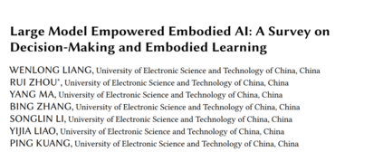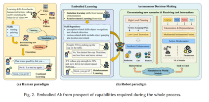 具身智能(Embodied AI)旨在发展能够具备物理形态、并能在真实环境中进行感知、决策、行动与学习的智能系统,这为通用人工智能(AGI)的实现提供了一条有前景的路径。尽管经过数十年的探索,具身智能体在开放动态环境中执行通用任务时,仍然难以达到人类水平的智能。近年来,大模型的突破性进展彻底革新了具身智能,显著增强了其在感知、交互、规划与学习方面的能力。 本文对大模型赋能的具身智能进行了全面综述,重点聚焦于自主决策与具身学习。在决策方面,我们探讨了分层决策与端到端决策两类范式:具体而言,大模型如何增强分层决策中的高层规划、低层执行与反馈机制;以及大模型如何提升视觉-语言-行动(Vision-Language-Action, VLA)模型以支持端到端决策。在具身学习方面,我们介绍了主流的学习方法,并深入阐述大模型如何提升模仿学习与强化学习。首次地,我们将**世界模型(World Models)**纳入具身智能的综述,介绍其设计方法及其在增强决策与学习中的关键作用。 尽管该领域已取得了实质性进展,但仍然存在诸多挑战。本文最后对这些挑战进行了讨论,并展望了未来可能的研究方向。 附加关键词与短语:具身智能,大模型,分层决策,端到端,模仿学习,强化学习,世界模型