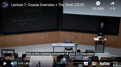 大学里的计算机课程通常专注于讲授从操作系统到机器学习这些学院派的课程或主题,而对于如何精通工具这一主题则往往会留给学生自行探索。在这个系列课程中,我们讲授命令行、强大的文本编辑器的使用、使用版本控制系统提供的多种特性等等。学生在他们受教育阶段就会和这些工具朝夕相处(在他们的职业生涯中更是这样)。因此,花时间打磨使用这些工具的能力并能够最终熟练地、流畅地使用它们是非常有必要的。