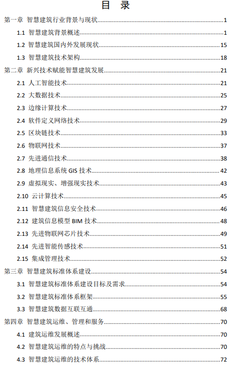 与此同时,我国在智慧建筑领域的著作还不够丰富,无法满足广大科研工作者和工程技术人员的需求。本白皮书作者来自智慧建筑领域理论研究和工程化实现的一线团队,具有丰富的工程实践经验。本书内容涉及:智慧建筑背景与现状、新兴技术赋能智慧建筑发展、智慧建筑标准体系建设、智慧建筑运维管理和服务、经典应用范例分析等。本书可为我国制定相关技术标准提供参考,也可以作为智能家居、智慧建筑、智慧社区、智慧城市等领域系统开发人员和相关专业工程师的实用参考书。