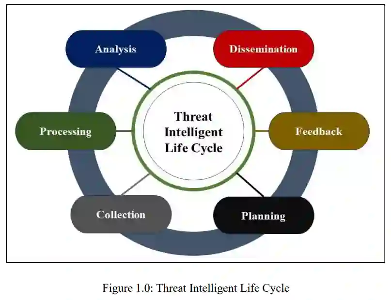 威胁情报多年来发生了重大演变,从人工数据分析过渡到利用先进技术,特别是人工智能(AI)。威胁情报的演变表明,网络安全正从被动应对向主动出击转变[19, 506]。最初,威胁情报在很大程度上依赖于人工分析师筛选数据,但数据的指数级增长使得这种方法既不充分又耗时[20, 21, 507]。随着人工智能的出现,这一格局发生了显著转变。图 1.0 显示了威胁智能生命周期。