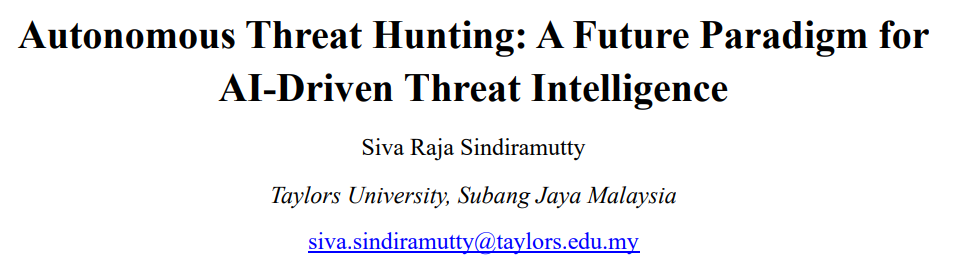 网络安全形势日益复杂多变,威胁的复杂程度和规模也在不断发展。传统的威胁情报方法往往难以跟上这些快速发展的步伐,从而导致一个关键的研究问题:无法快速有效地实时检测、分析和缓解新出现的威胁。这一持续存在的挑战导致了对自主威胁狩猎方法的需求。人类操作系统在处理不同来源产生的大量数据以及辨别潜在威胁的细微模式方面能力有限。此外,网络威胁的时间敏感性要求采取积极主动的自动应对措施。自主威胁狩猎旨在利用人工智能驱动系统的能力来弥补这一差距。这些系统可以自主收集、处理和分析大量数据,从而能够识别微妙的入侵迹象和以前未曾见过的攻击载体。自适应、可扩展和快速的威胁检测与缓解机制的必要性与日俱增,这凸显了开发自主方法的紧迫性。因此,研究问题围绕着传统方法在应对现代网络威胁的速度和复杂性方面效率低下的问题展开,强调迫切需要由人工智能赋能的自主方法来强化网络安全措施。