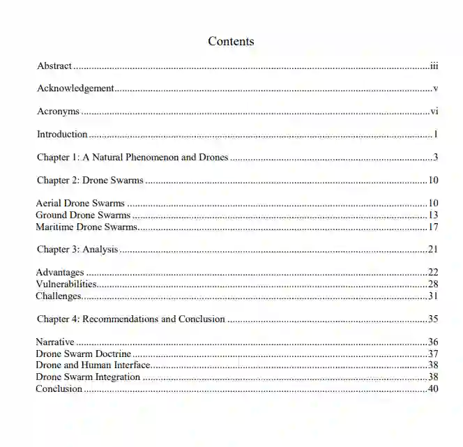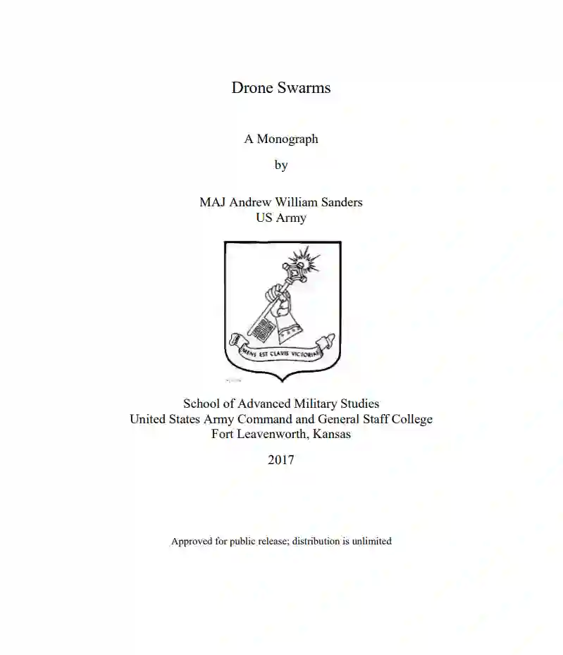 无人机蜂群来了!美国、中国和俄罗斯处于无人机群开发和利用的最前沿。然而,无人机的低成本和易得性使非国家行为者能够以富有想象力和创造力的方式利用无人机,包括蜂群。本专著的目的是要解决以下问题:无人机群为军队提供什么效用?无人机群提供了许多优势,包括持续的情报、监视、侦察和目标定位;对军事人员和组织的低风险和低成本,以及瘫痪个体和组织决策的潜力。相比之下,无人机群有其脆弱性和挑战。脆弱性包括从对手的黑客攻击到反蜂群武器的存在,而一些挑战包括组织上的抵制和国际法。无人机群就在这里,而且很快就会出现在战场上,现在是解决如何最好地运用它们的时候了。在概述了无人机群的潜在好处和局限性之后,该专著最后提出了四项建议:需要叙述、建立无人机群理论、了解人机界面以及为无人机群的使用进行组织过渡。