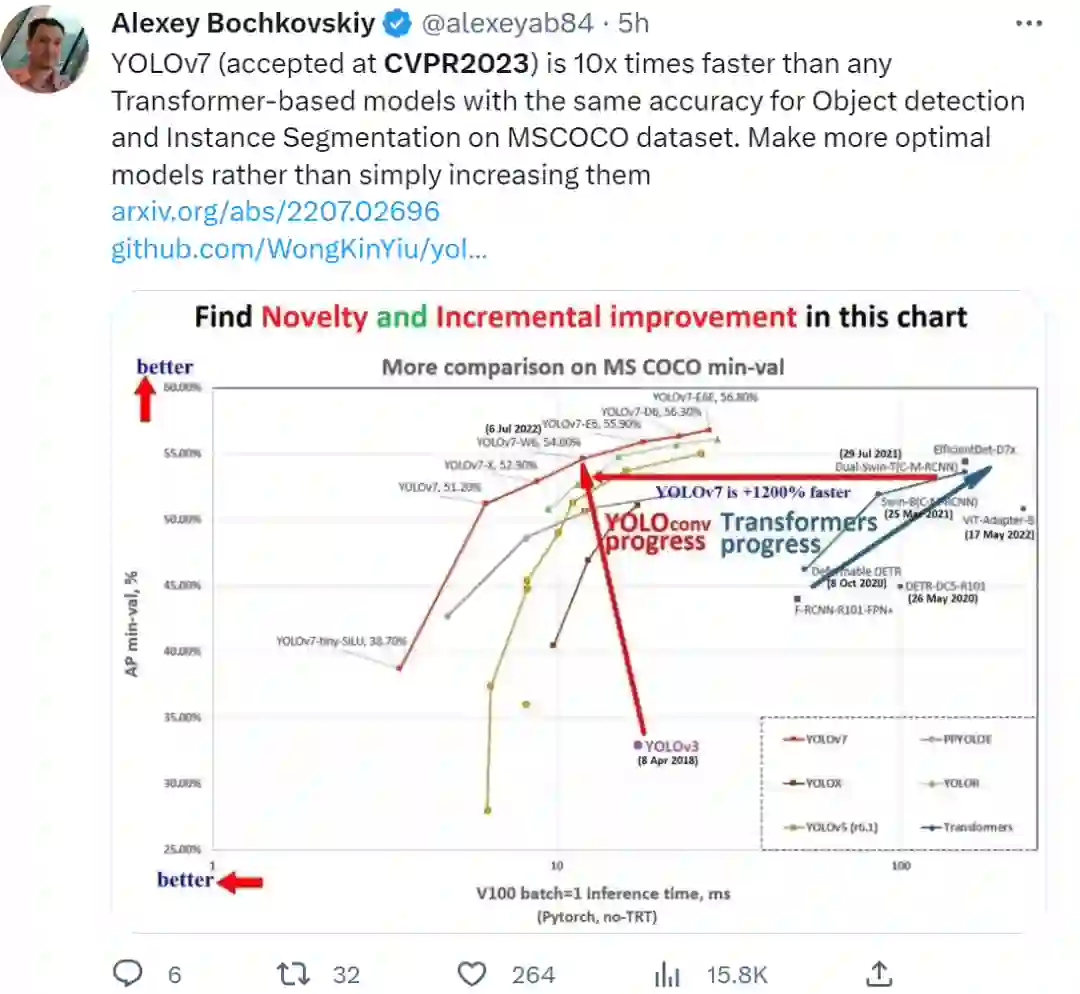 YOLO 项目维护大神 Alexey Bochkovskiy 表示,自己参与的论文《YOLOv7: Trainable bag-of-freebies sets new state-of-the-art for real-time object detectors》已被接收,该研究的三位作者 Chien-Yao Wang、Alexey Bochkovskiy 和 Hong-Yuan Mark Liao 还是 YOLOv4 的原班人马。