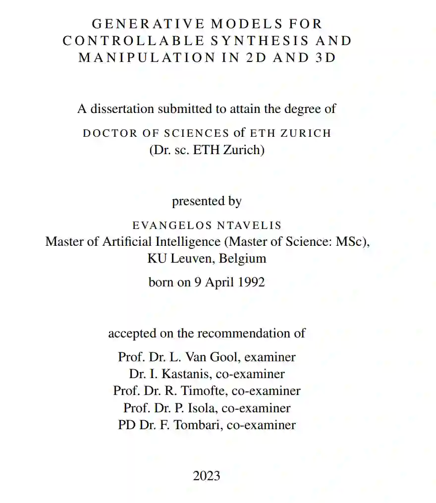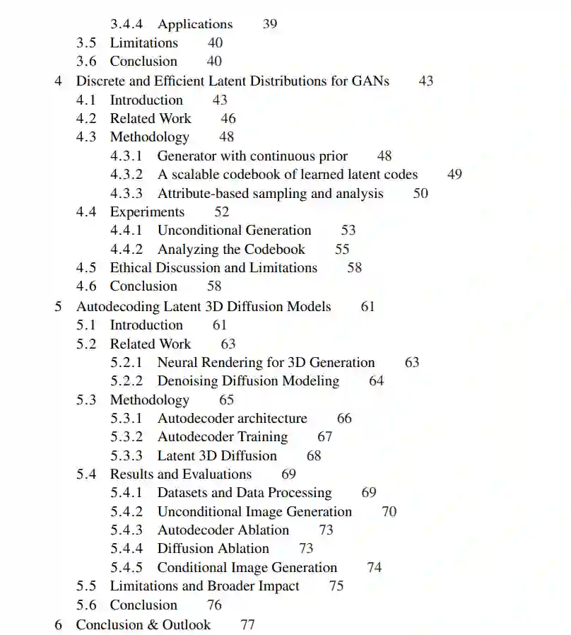 最后,我们引入了一个用于合成静态和可动3D资产的潜在3D扩散模型。首先,我们通过训练一个体积自解码器来重建多视图图像,学习一个紧凑的3D表示。然后,我们在自解码器的中间特征上训练潜在扩散模型。我们在多种多视图图像数据集、真实野生视频中移动的人的数据集,以及一个大规模的静态物体真实视频数据集上应用我们的方法。我们执行无条件和文本驱动的生成;我们的方法足够灵活,可以使用现有的相机监督或在训练期间有效地推断相机参数。 总之,本论文探索了不同的可控合成与图像及3D资产操作方法。我们希望我们的贡献能使我们更接近于我们的愿景:民主化内容创造和激发人类创造力。