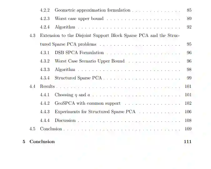鉴于主成分分析在我们的研究和机器学习中的重要性,我们也提供了一种解决稀疏主成分分析问题的新方法。该方法是第一个一步生成多个稀疏主成分的方法,而现有的技术依赖于压缩迭代生成主成分。提出的方法(GeoSPCA)生成高质量的解决方案,将压缩技术解释的方差提高了一个数量级以上。
