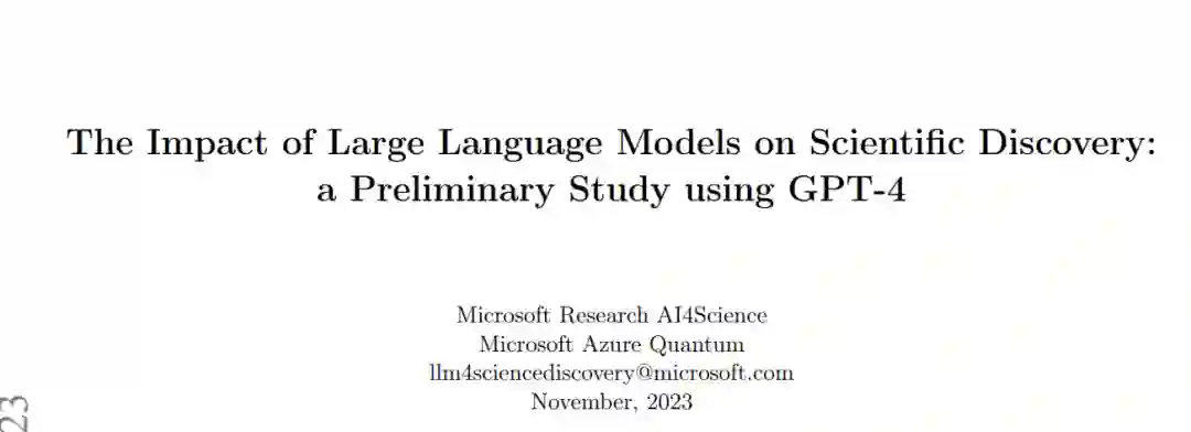 近年来,在自然语言处理领域取得的突破性进展促成了强大的大型语言模型(LLM)的出现。这些模型在广泛的领域中展示了卓越的能力,包括理解、生成和翻译自然语言,甚至还包括超出语言处理范畴的任务。在这份报告中,我们深入探讨了LLM在科学发现/研究领域的性能,重点关注当前最先进的语言模型GPT-4。我们的调查涵盖了多个科学领域,包括药物发现、生物学、计算化学(密度泛函理论(DFT)和分子动力学(MD))、材料设计以及偏微分方程(PDE)。