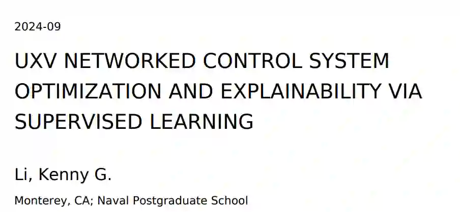 本论文探讨了如何应用有监督的机器学习技术来提高网络控制系统(NCS)的性能和可解释性。无人驾驶系统(UxVs)可通过覆盖大片区域的延伸侦察任务提供快速高效的目标定位。以协作方式控制一组 UxV 是一个难题,美海军正在开发的一个解决方案是网络控制系统行为集成优化(BION)。BION 是一种 NCS,利用部分可观测蒙特卡洛规划(POMCP)算法提供接近最优的近实时编队控制。本文旨在通过使用训练优良的神经网络近似关键功能,解决 POMCP 算法的某些局限性。神经网络利用概率技术和显著性图提高了可解释性,同时也提高了处理速度。在基于 ResNet 的不同架构上进行了实验,并成功地将训练良好的神经网络集成到了 BION 中。这项研究拓展了实验和开发 BION 的能力,从而推动了UxV 的开发和集成。