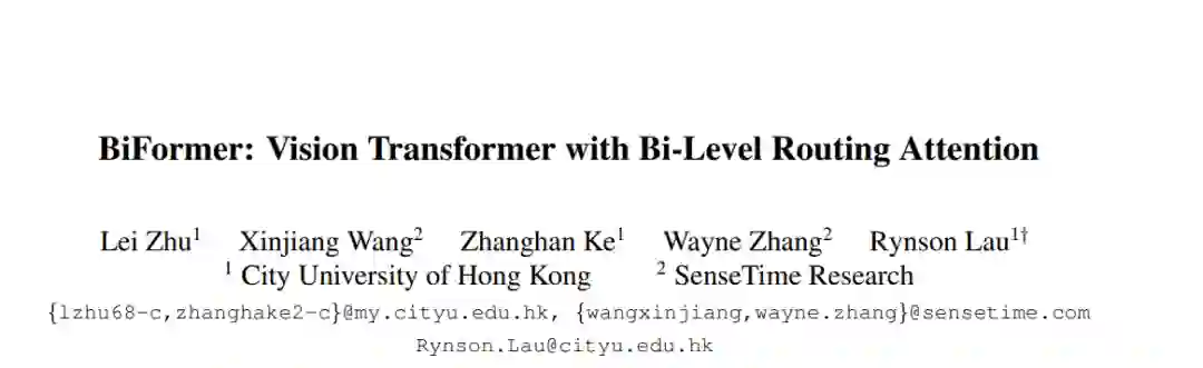 作为视觉transformer的核心构建模块,注意力是捕捉长程依赖关系的强大工具。然而,这种能力是有代价的:它会带来巨大的计算负担和内存占用,因为要计算所有空间位置上的成对token交互。一系列工作试图通过将手工制作的和内容无关的稀疏性引入注意力来缓解这个问题,例如将注意力操作限制在局部窗口、轴向条纹或膨胀窗口内。与这些方法相比,本文提出了一种新的通过双层路由的动态稀疏注意力,以实现具有内容感知的更灵活的计算分配。具体来说,对于一个查询,首先在粗粒度的区域级别上过滤掉不相关的键值对,然后在剩余的候选区域(即路由区域)中应用细粒度的token-to-token attention。本文提供了所提出的双层路由注意力的一个简单而有效的实现,利用稀疏性来节省计算和内存,同时只涉及GPU友好的密集矩阵乘法。用所提出的双层路由注意力建立了一个新的通用视觉transformer,称为BiFormer。由于BiFormer以查询自适应的方式关注一小部分相关标记,而不会分散其他不相关标记的注意力,因此它具有良好的性能和较高的计算效率,特别是在密集预测任务中。在图像分类、目标检测和语义分割等计算机视觉任务中的经验结果验证了所设计的有效性。代码可以在https://github.com/rayleizhu/BiFormer上找到。