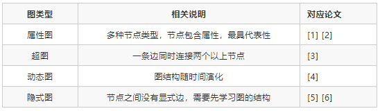 2.3 GNN 在各类图数据及任务上的拓展 图数据是一个种类繁多的数据家族,模型对这些不同类型的数据如何适配,是 GNN 发展的另一重要方向。下表给出了相应的概括: