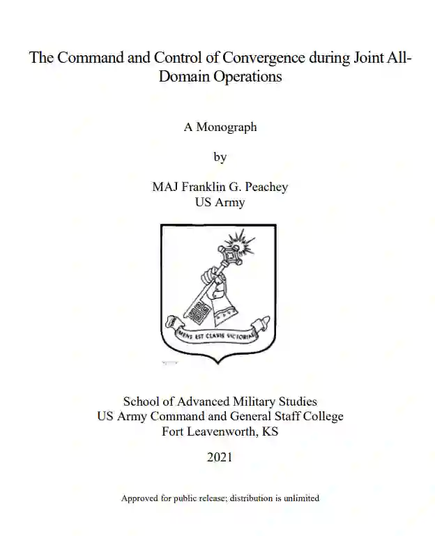 自2012年发表《联合行动的顶点概念:2020年联合部队》(CCJO 2020)以来,联合部队已经逐步向JADO的概念过渡。虽然 "联合 "的概念已经存在了几十年,但美国防部(DoD)和各军种只是在最近才将目光投向偶发的跨域同步和能力整合。自2012年以来,各军种在与其他军种不同程度的合作下,制定了通过跨域能力作战的概念性作战方法。然而,正如美国陆军未来和概念中心前主任埃里克-韦斯利中将所说,"你就是不能让不同的军种拥有自己的MDO[多域作战]概念并将它们联合起来......这必须是一项自上而下的努力"。在这一点上,出现了一个不可分割的紧迫问题:如何有效地C2跨领域和跨梯队的能力融合,以确保联合部队在有争议的OE中的优势。