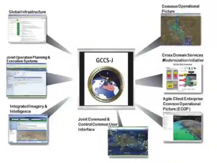 (1) GCCS-J 具有全球一体化的 C2 架构,是主要的 C2 使能技术,可提供相关、全面、及时和准确的全球 COP。GCCS-J 由 GCCS-Integrated Imagery and Intelligence 等辅助系统或其他通用情报图片工具提供支持,以生成最准确的作战环境渲染图。GCCS-J 还采用了 SA Service-Enhanced(又称地对空 SA)等新兴技术。