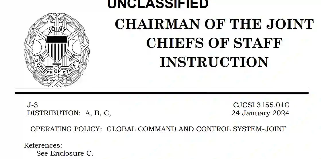 本指令为运营和管理美国防部态势感知(SA)记录系统,即联合全球指挥与控制(C2)系统(Global Command and Control System-Joint,GCCS-J)制定政策并分配职责。确保 GCCS-J 及其全球架构、支持技术和熟练的员工队伍能够提供相关、全面、及时和准确的全球共同行动画面 (COP),以满足支持国家军事指挥系统 (NMCS) 的行动要求。