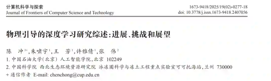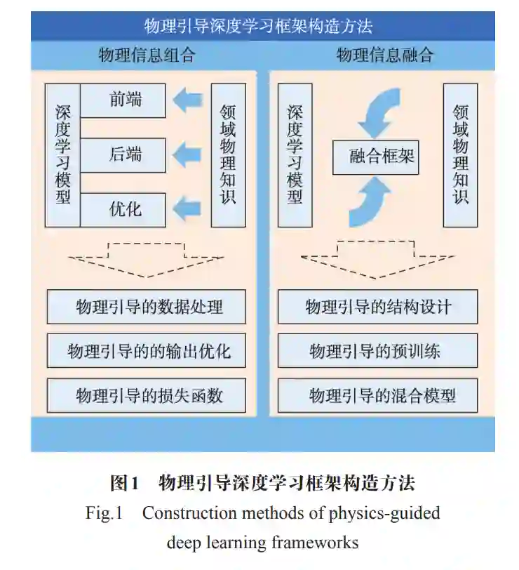 摘 要:尽管深度学习在处理非线性高维问题时表现出强大的能力,但在复杂科学与工程问题中仍面临诸多挑战, 如高昂的计算成本、大量的数据需求、难以解释的黑盒特性,缺乏对物理规律的建模能力等。为此,近年来涌现了一 种新的框架——物理引导深度学习,通过将领域内的物理知识融入深度学习模型的构建和训练过程中,旨在增强模 型的性能、可解释性及其物理一致性。对国内外关于物理引导深度学习的相关工作进行了全面梳理与分析。介绍 了物理引导深度学习框架的主要动机与理论基础。对物理信息组合与物理信息融合两种模式进行了详细讨论,总 结了各方法的特点、局限性与应用场景。分析了物理引导深度学习在多个领域应用中的表现,并从计算复杂性与优 化收敛问题、控制方程偏离问题、观测数据依赖问题与知识融合困难问题四个方面探讨了该框架目前面临的挑战, 并基于此展望该领域未来的发展方向,以期为研究者提供借鉴思路及多维度视角。 关键词:科学范式;物理引导;深度学习;模型融合;控制方程