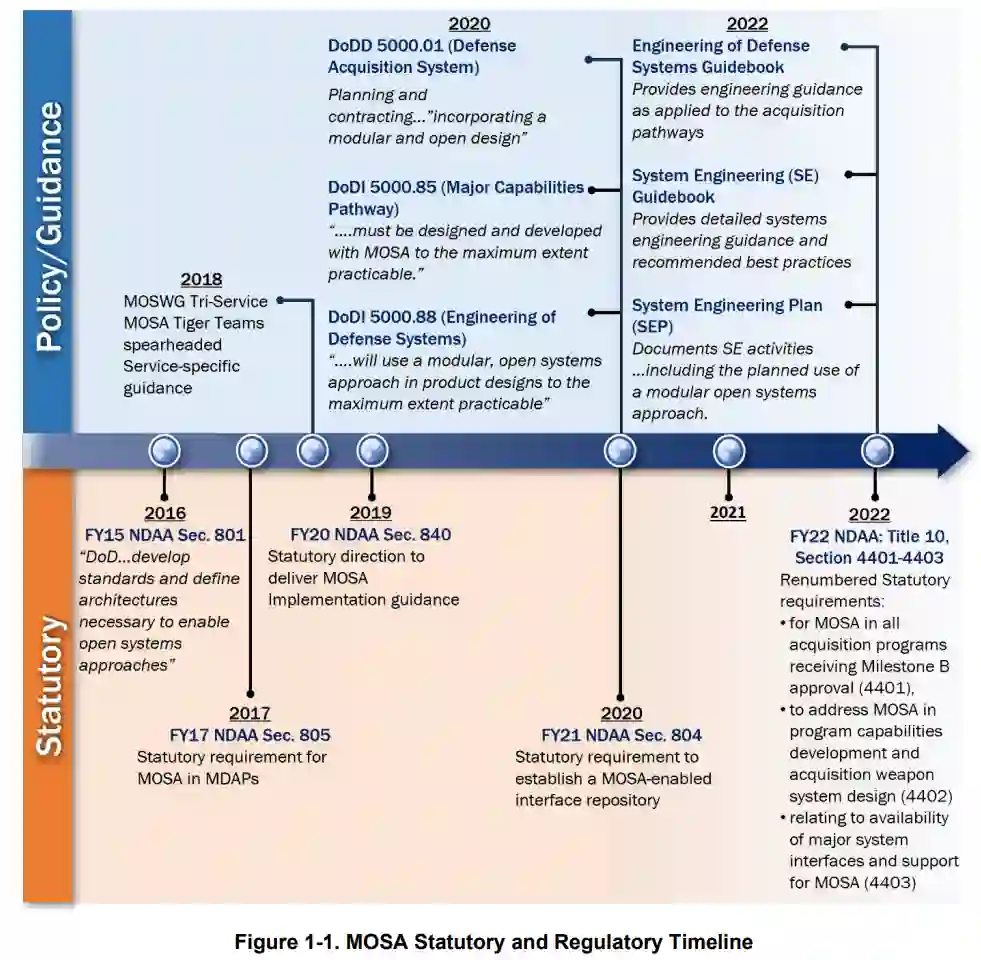 本指南为美国防部(DoD)相关群体(包括各军种、文职人员及国防部支持承包商)提供信息,旨在确保项目在国防采办全生命周期中纳入模块化开放系统方法(MOSA)。目标读者涵盖决策者、项目管理办公室(PMO)、项目经理(PM)及负责在国防项目中实施与评估MOSA的牵头系统工程师。尽管MOSA长期应用于国防部项目,本指南阐述了当前强制要求采用MOSA的法规与国防部政策。