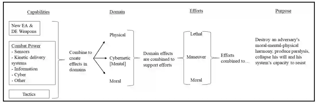 博伊德断言,战斗人员必须有道德-心理-身体的和谐才能进行抵抗。要破坏这种和谐,需要将致命的、机动的和道德的努力结合起来。施耐德断言,战斗有三个领域:道德、控制论[心理]和身体。各个领域都会受到能力的影响,包括EA。结合这些观点,我们得出了一种方法来理解新的电子攻击能力如何在多领域作战中被利用(见图3)。考虑到案例研究,现在的任务是考虑我们如何将新兴的EA系统与现有的能力相结合,在物理、控制论和道德领域产生影响,以支持致命的、机动的和道德的努力。
